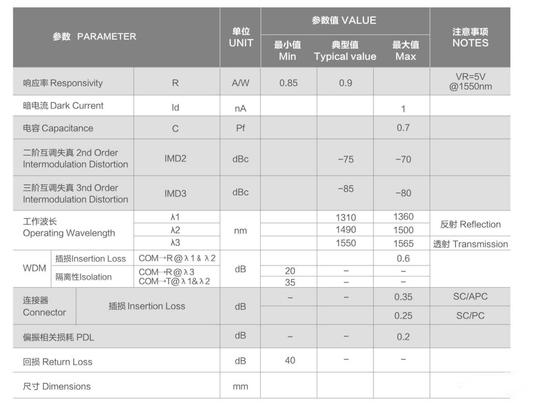 WDM-PD(CATV-PD)波分探測器